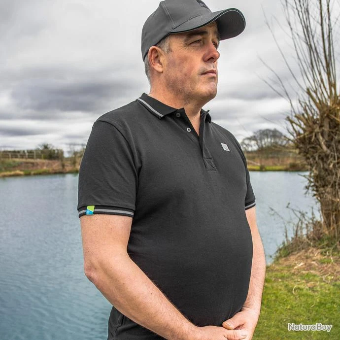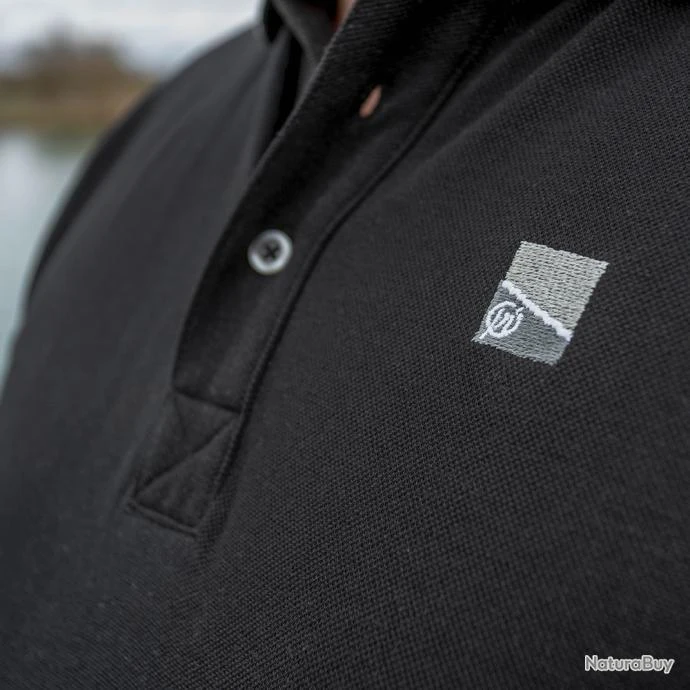 Polo noir 60% coton, 40% Polyester avec logo brodé. Disponible de M à 3XL.