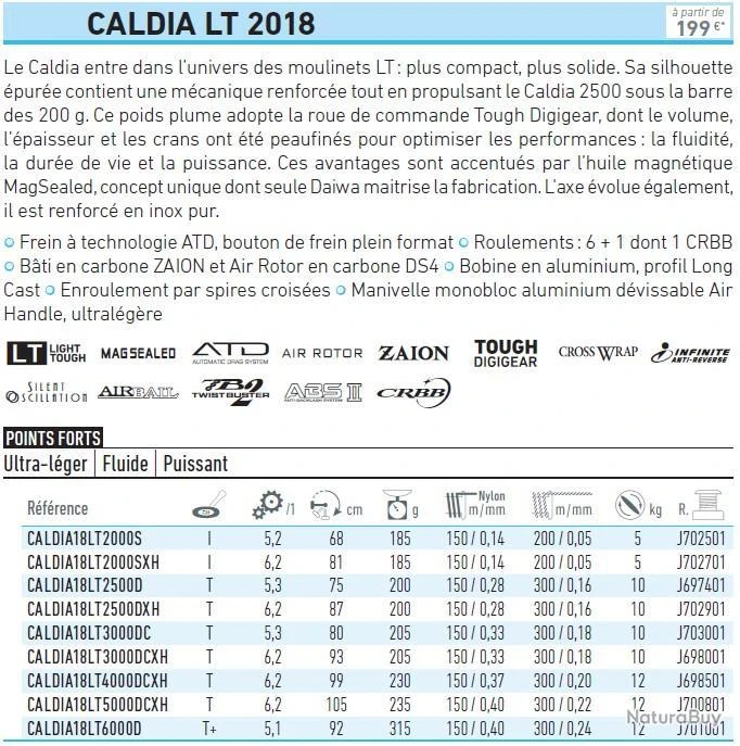 Caractéristiques des moulinets Daiwa Caldia LT 2018: