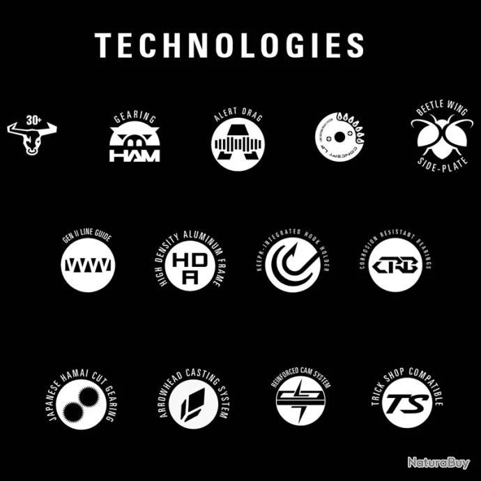 - 7 roulements à billes (2 High Spin Corrosion Resistant, 4 roulements inox + 1 Anti-Retour Dead Stop)