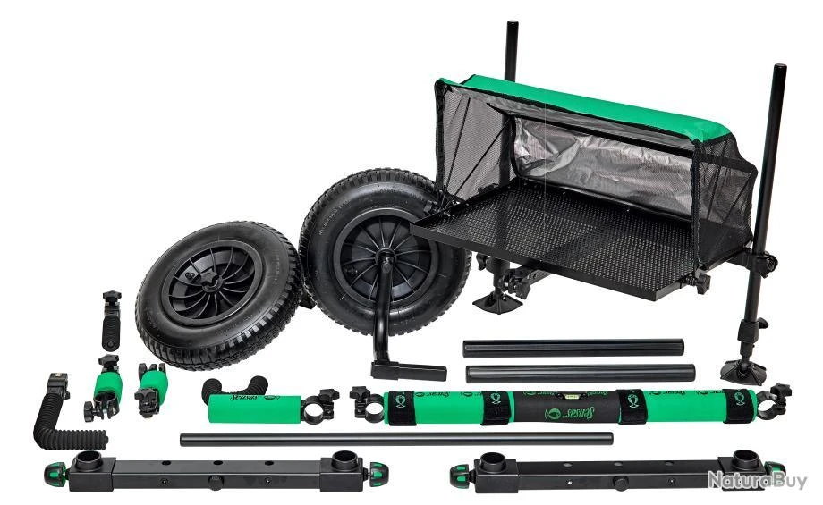 Composition en détail : une barre d’amorçage, un jeu de roues arrières increvables, une desserte à store Jumbo ainsi qu’un support à vis roubaisien EVA Jumbo.Set permettant d’équiper votre station Jumbo. _x000D_